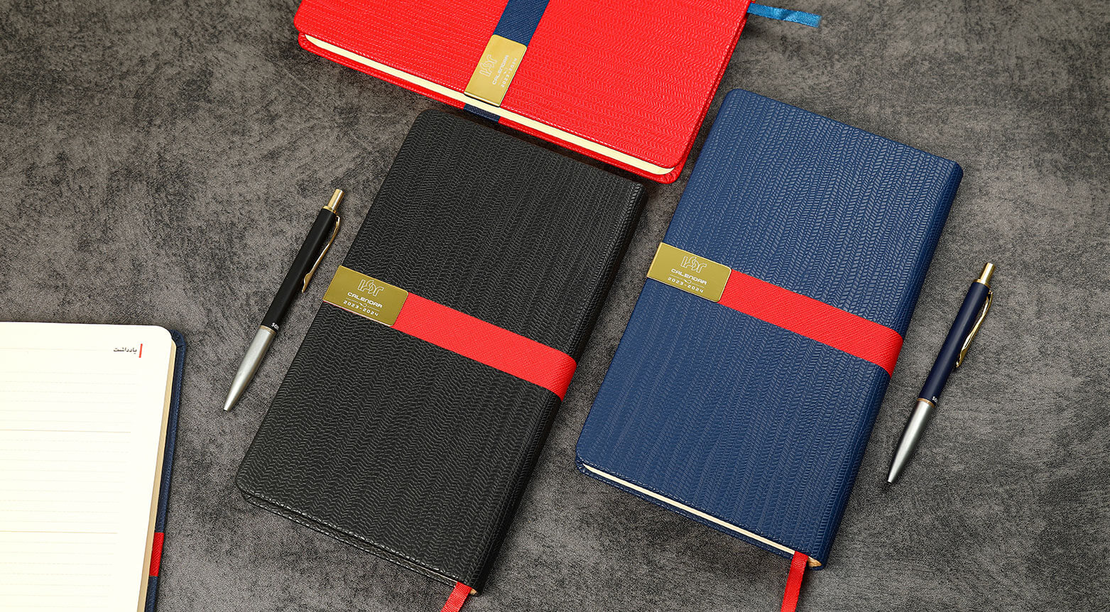 - امکانات جانبی چاپ اختصاصی: برای برندینگ کامل، وجود امکاناتی مانند چاپ لت اختصاصی، طلاکوب، حک لیزر لوگو روی پلاک یا داغی روی جلد ضروری است تا محصول کاملاً شخصی سازی شود.