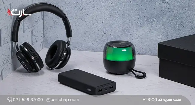 اقلام : یک عدد پاوربانک 20.000 – اسپیکر گرد کوچک – هدفون