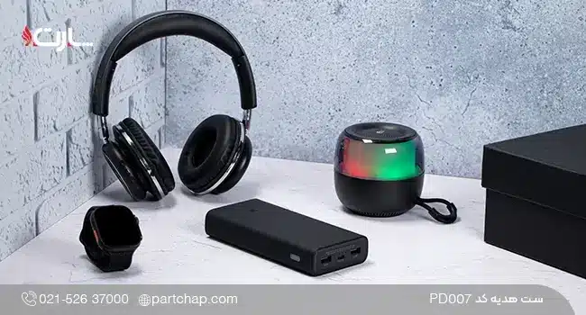 اقلام : یک عدد پاوربانک 20.000 – اسپیکر گرد کوچک – هدفون – ساعت هوشمند با بند