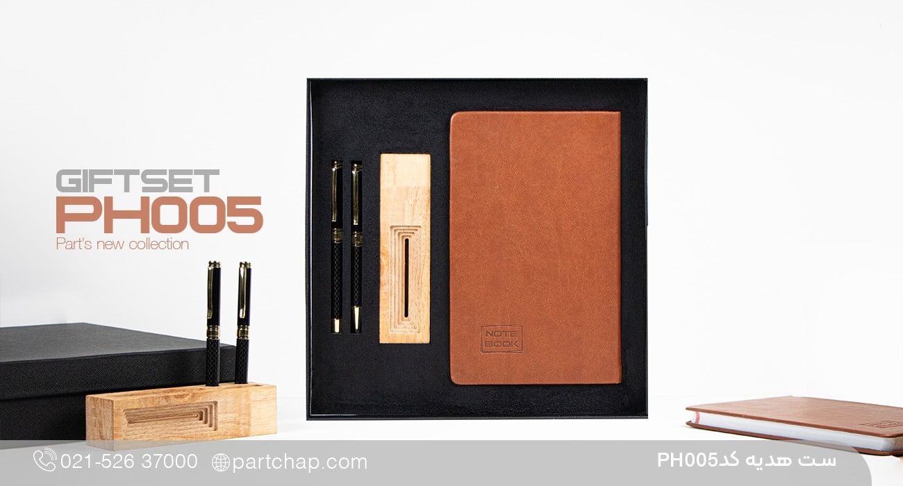 - اقلام : دفتر یادداشت ، نظم دهنده چوبی ، خودکار و روان نویس