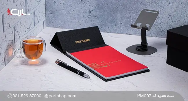 اقلام : نیم لیوان دوجداره – هولدر موبایل فلزی تاشو -خودکار- دفتر یادداشت