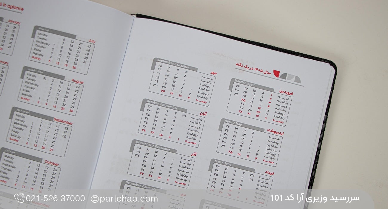 ویژگیهای سررسید وزیری آرا کد ۱۰۱