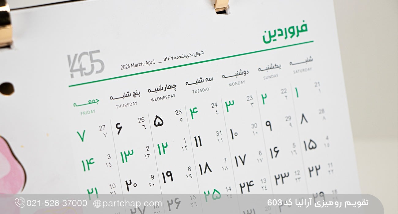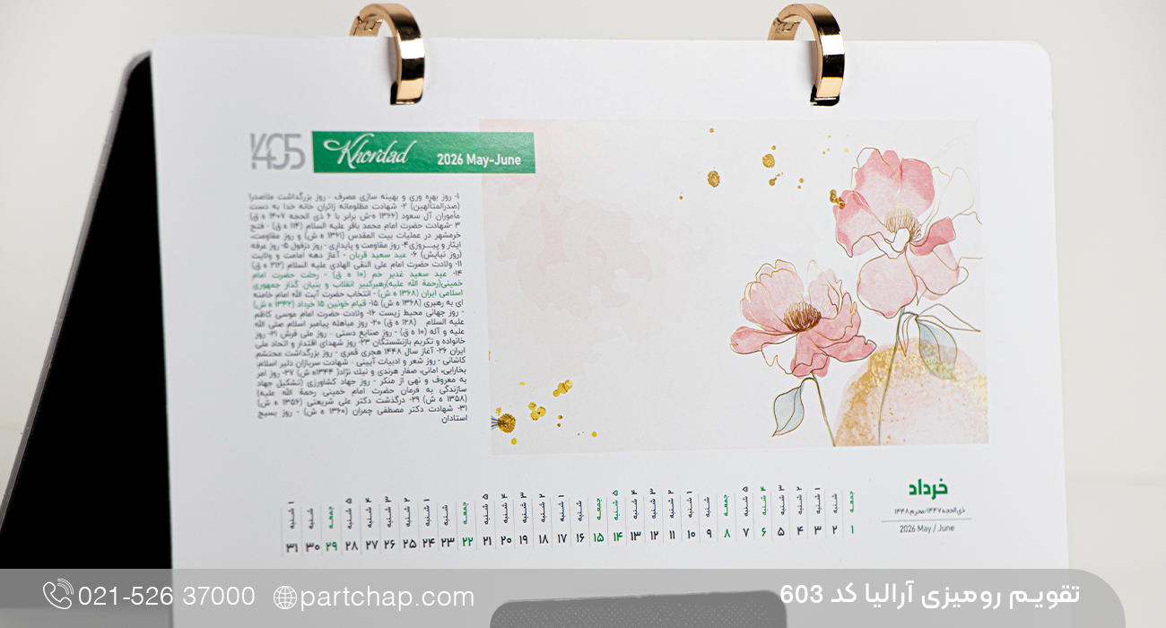 تقویم رومیزی آرالیا کد 603: ظرافت در طراحی و کیفیت بینظیر