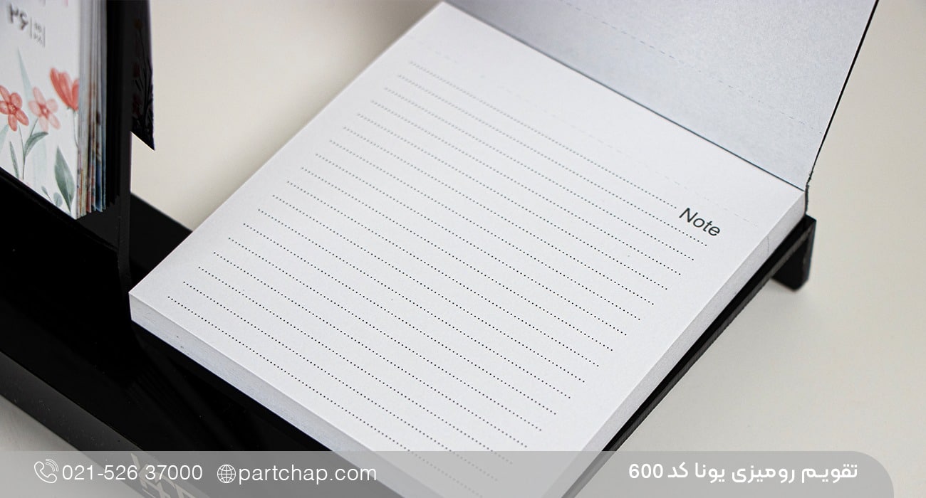 تقویم رومیزی یونا کد 600 با گاهشمار ماهانه و بخش یادداشتدار، به کاربران این امکان را میدهد که برنامهها و رویدادهای خود را به بهترین شکل مدیریت کنند. برخی از مزایای این طراحی عبارتند از: