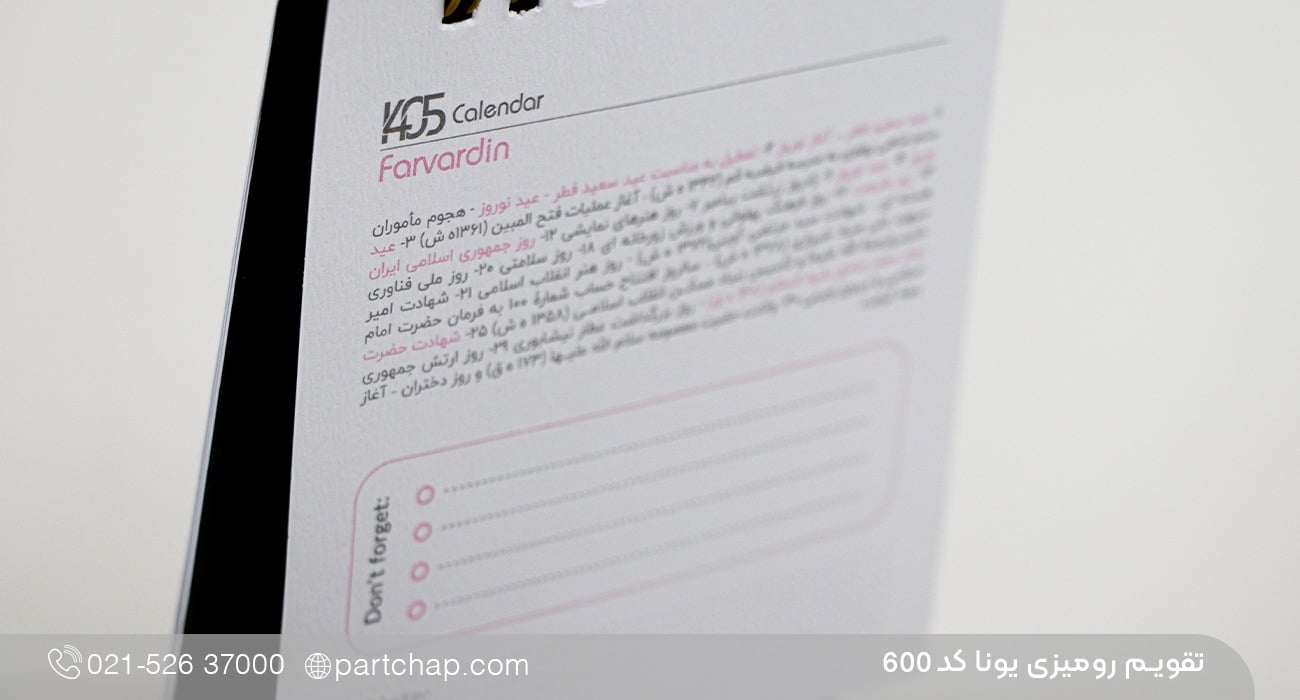 ویژگیهای برجسته تقویم رومیزی یونا کد 600